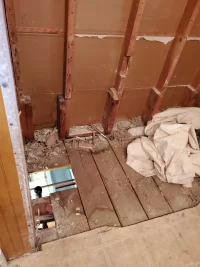 In reference to the pictures Kathi posted; In that picture of the space that the tub was removed from, you can see through the hole in the floor where the drain went through, and see the treadmill in the basement.